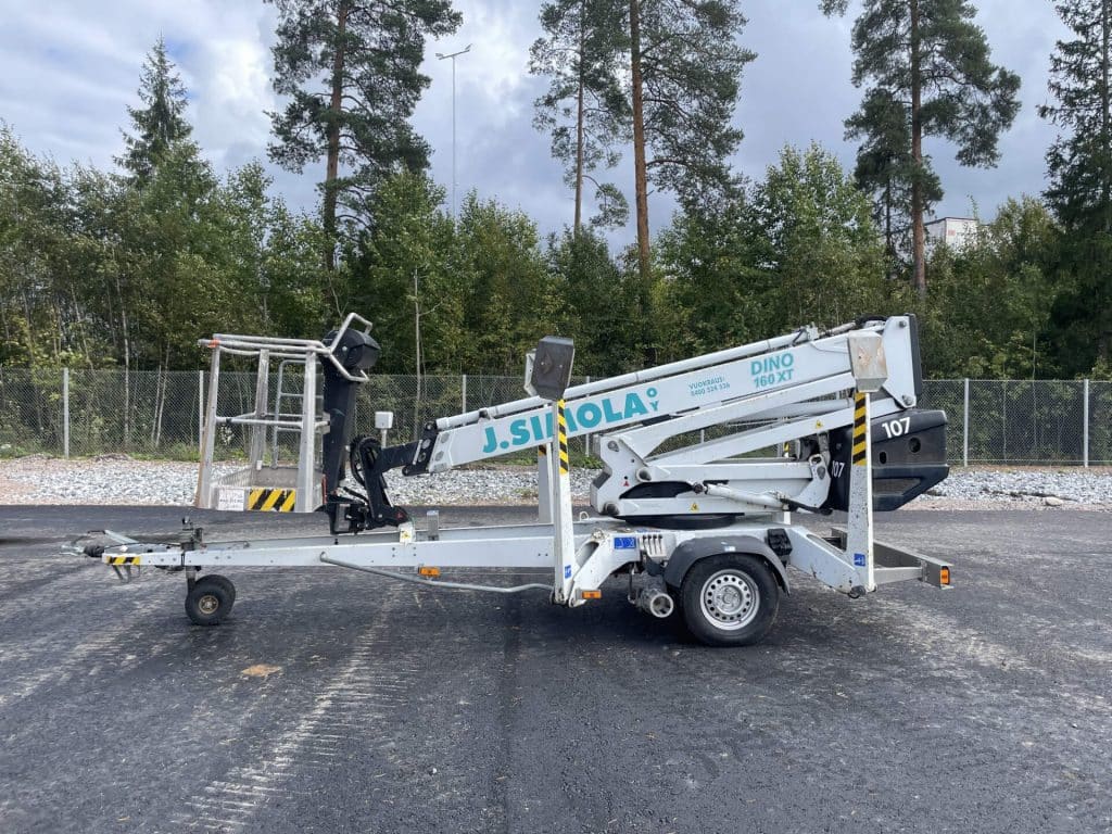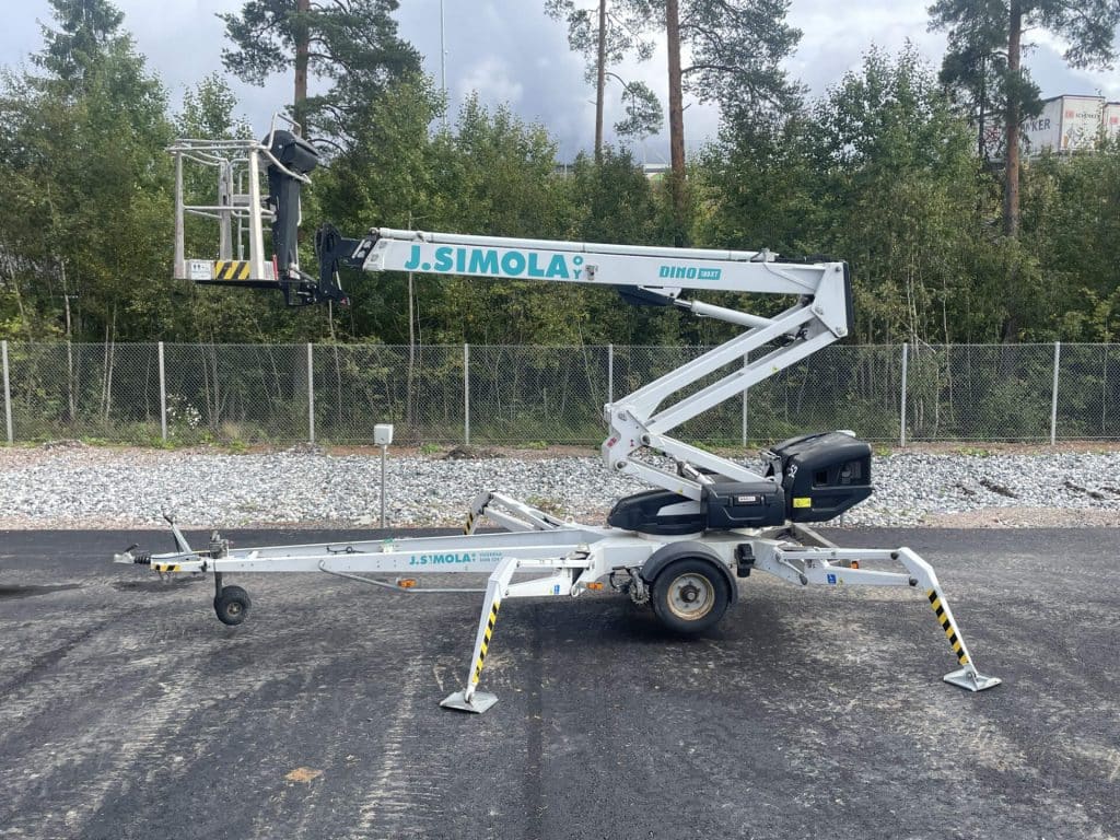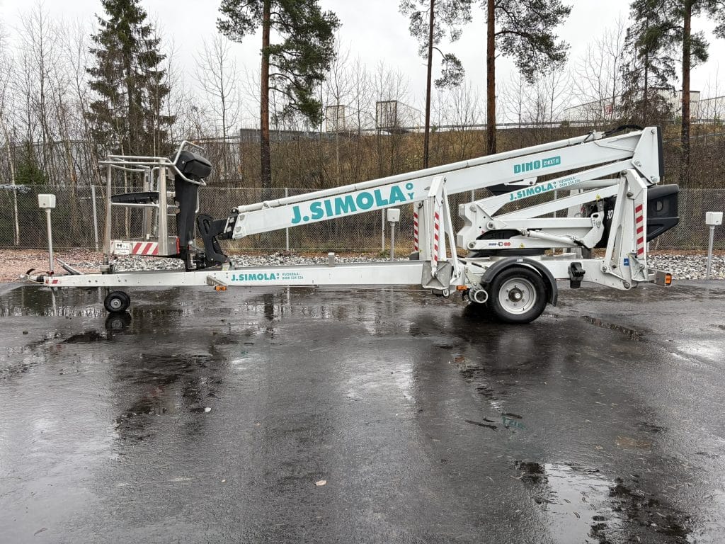 Tarvittaessa tuomme nostimen työmaallesi, mutta Dinot on helppo kuljettaa paikasta toiseen myös oman auton perässä. Huomioithan, että vetäminen vaatii ajokortissa pikku-e:n sekä tietysti riittävästi autolta vetokykyä.